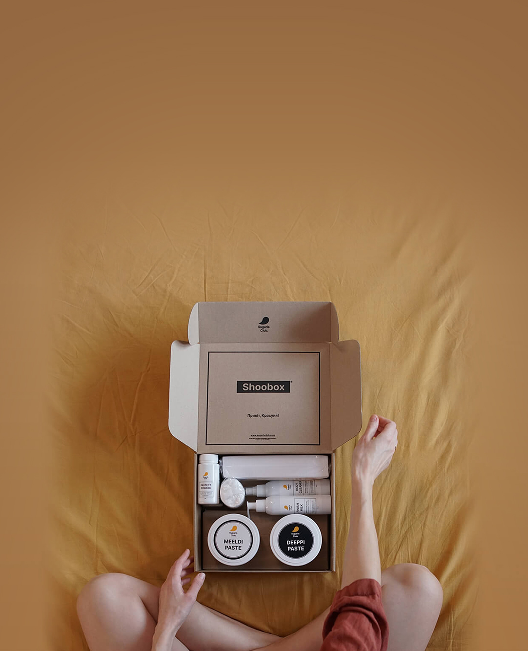 Shoobox — система шугарингу вдома, розроблена Sugaris Club на основі десятирічного досвіду та досліджень. Вона поєднує пасти, інструменти, догляд і навчання в єдину логіку процедури. Усі етапи працюють разом, щоб шугаринг вдома проходив стабільно та давав тижні гладкої й доглянутої шкіри. Shoobox — перша у світі повна система шугарингу вдома.